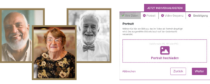 Auch das Videotemplate kann in diesem Schritt getauscht werden, damit die Hinterbliebenen ein zum Verstorbenen passendes Video generieren können.